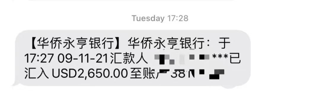 比如这个香港华侨永亨银行的企业账户收到的短信,第一条是到账;第二条存入才是真正的入账,才是不可撤销的。